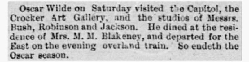 Wilde did not stay overnight in Sacramento.