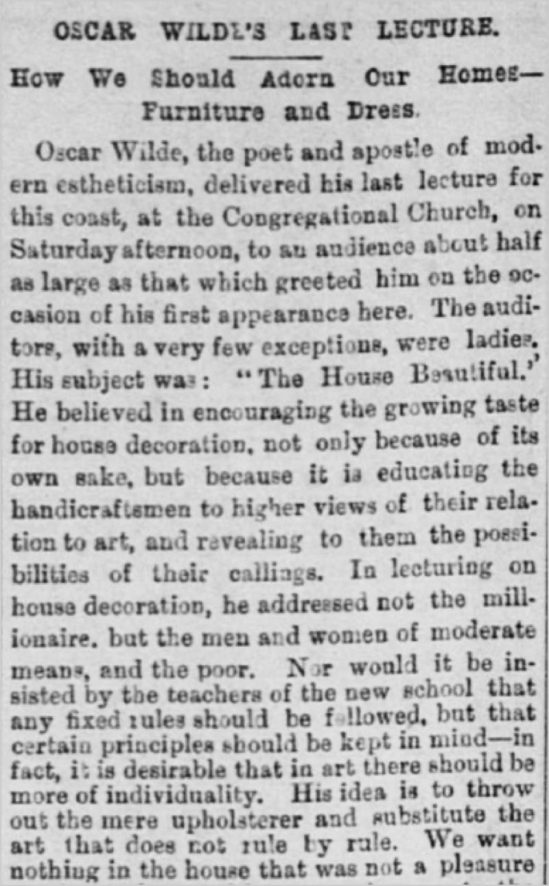 The Crocker Art Gallery visited by Wilde after his matinee lecture in Sacramento on April 8, 1882.