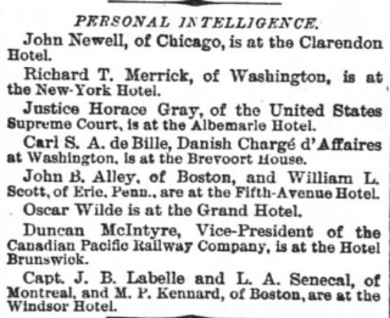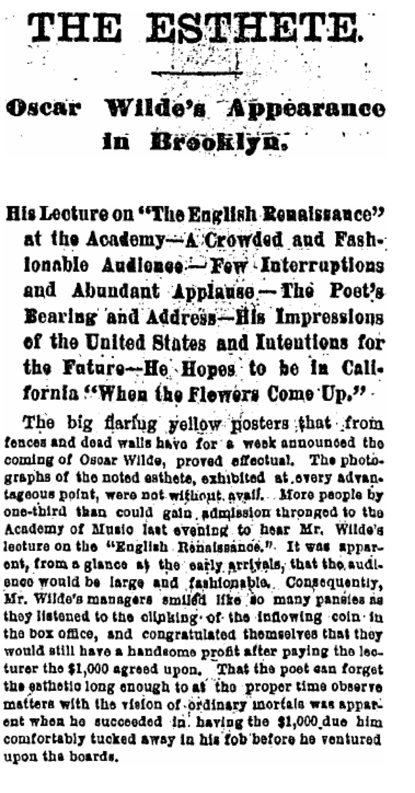 Brooklyn Daily Eagle, Feb 4, 1882. Oscar Wilde lecture