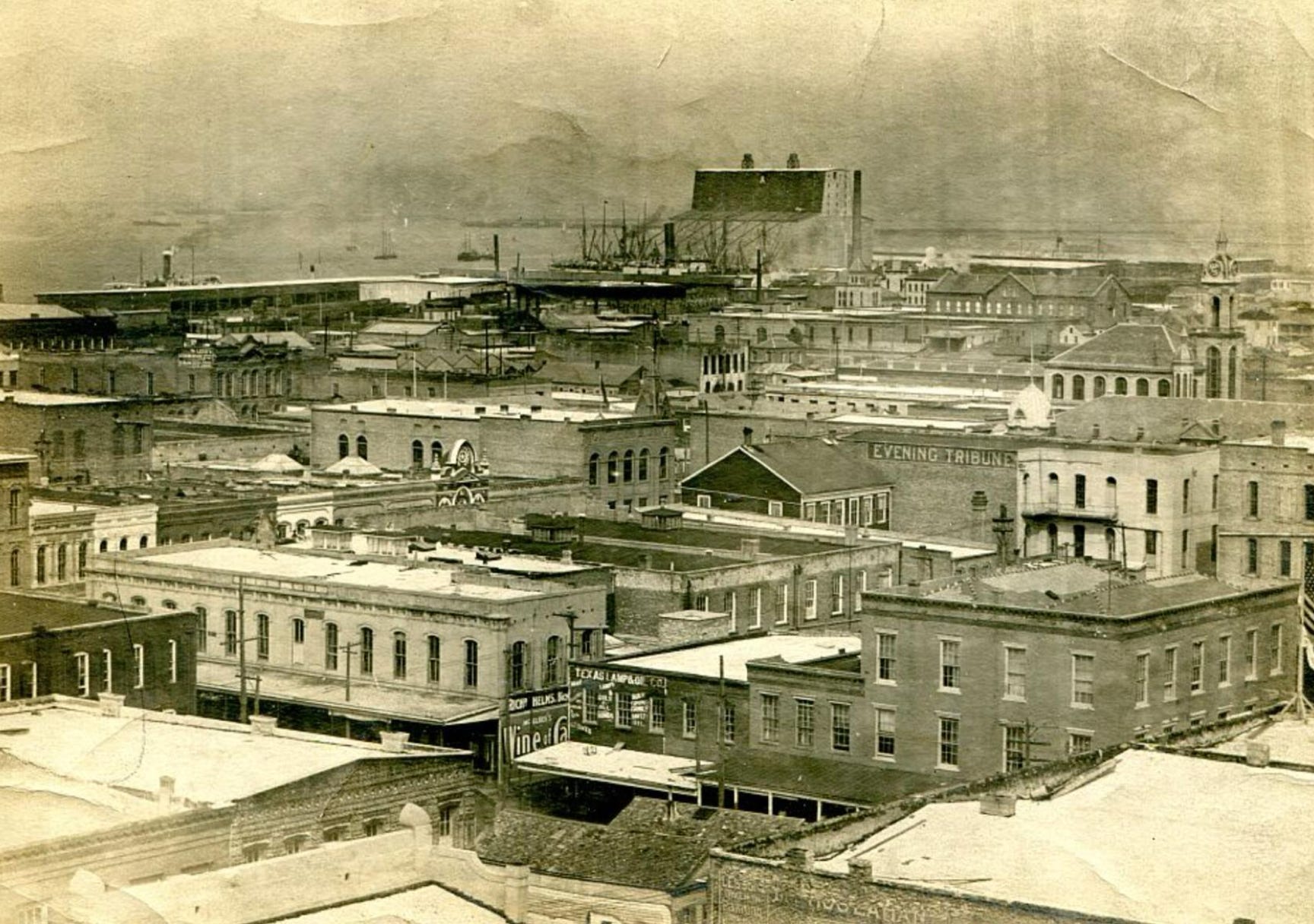 The view northeast from the roof of Wilde's hotel, before 1890.