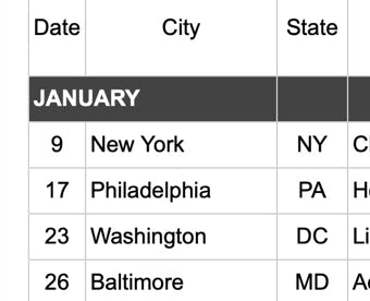 Each lecture is supported by details of the date, location, and subject, along with related ephemera—the standard being that all information is verified by a supporting primary source.