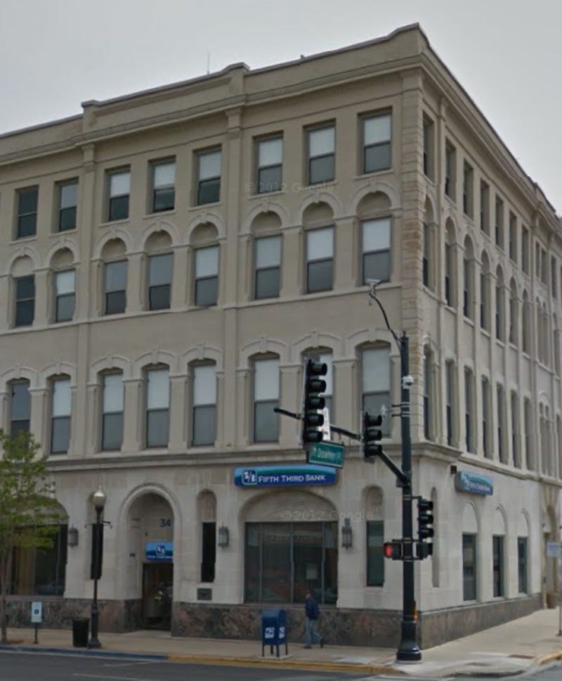 Building extant: became a bank, latterly Merchants Bank and Fifth Third Bank, but the property is now Coulter Court Residences (affordable housing)
